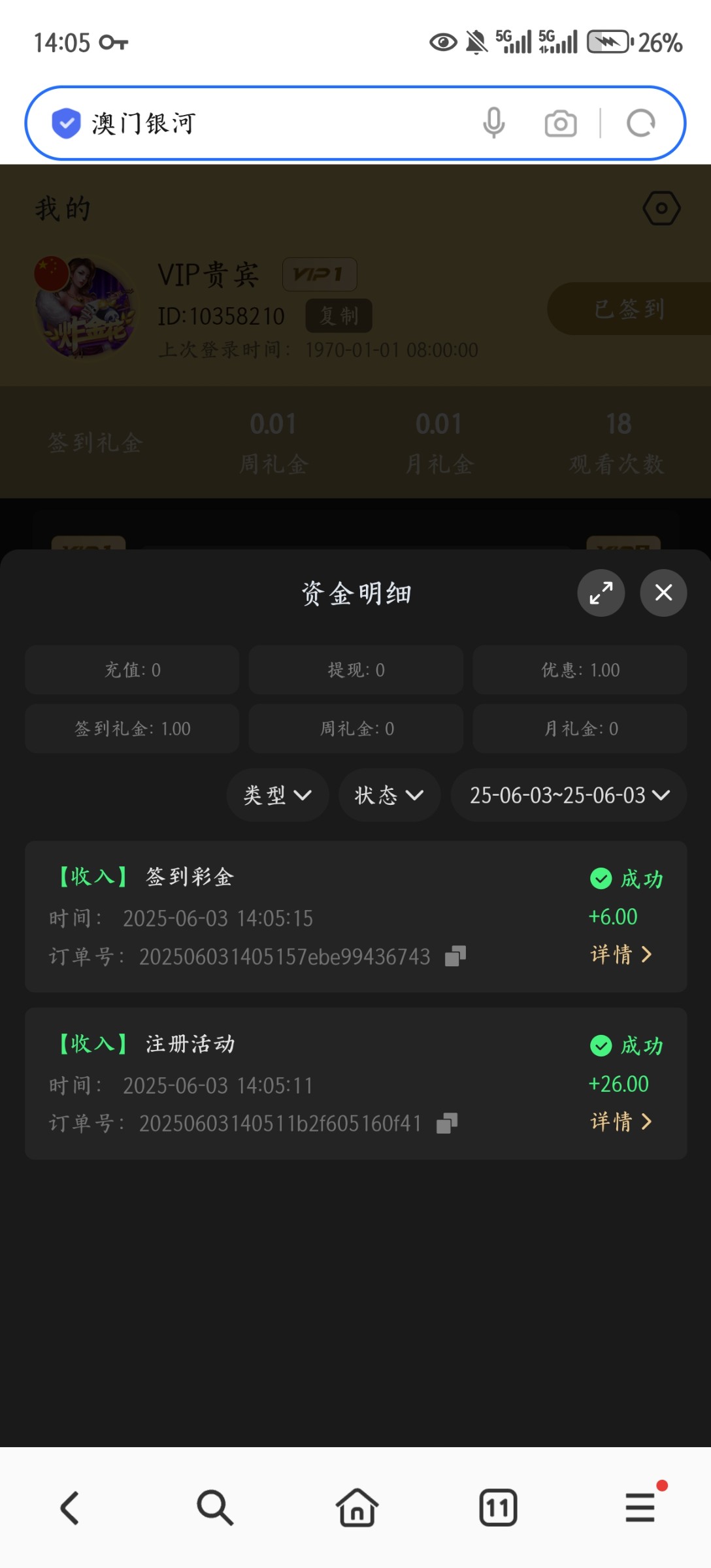 注册绑定提现信息秒送26 签到彩金6 有些注册直接秒送 5倍水提 提现自测