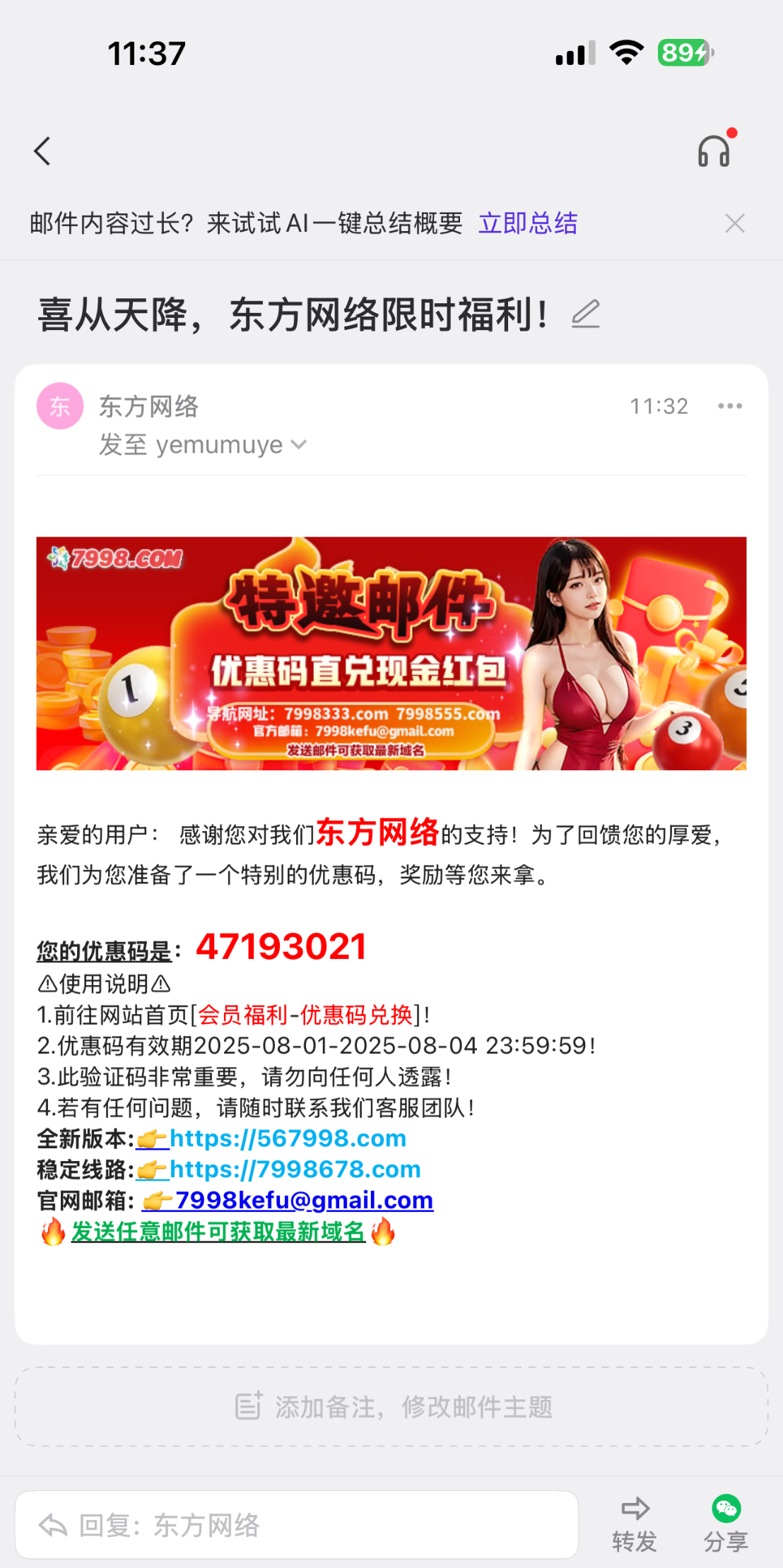 我兑换了18 看看邮箱有没有 垃圾邮件里找找