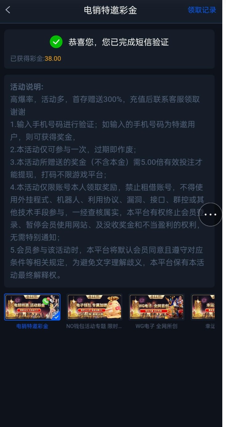 之前要找客服申请现在改版了 我是接到电话的,叫我注册账号然后在优惠活动里面自助领取的,你们可以注册账号之后去看一看能领取,不能领取的话就去找在线客服说领电销彩金。