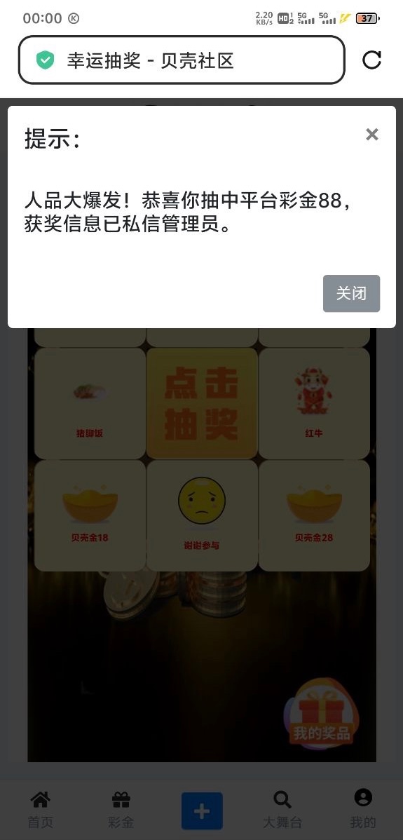 社区签到抽奖第一次抽了88彩金