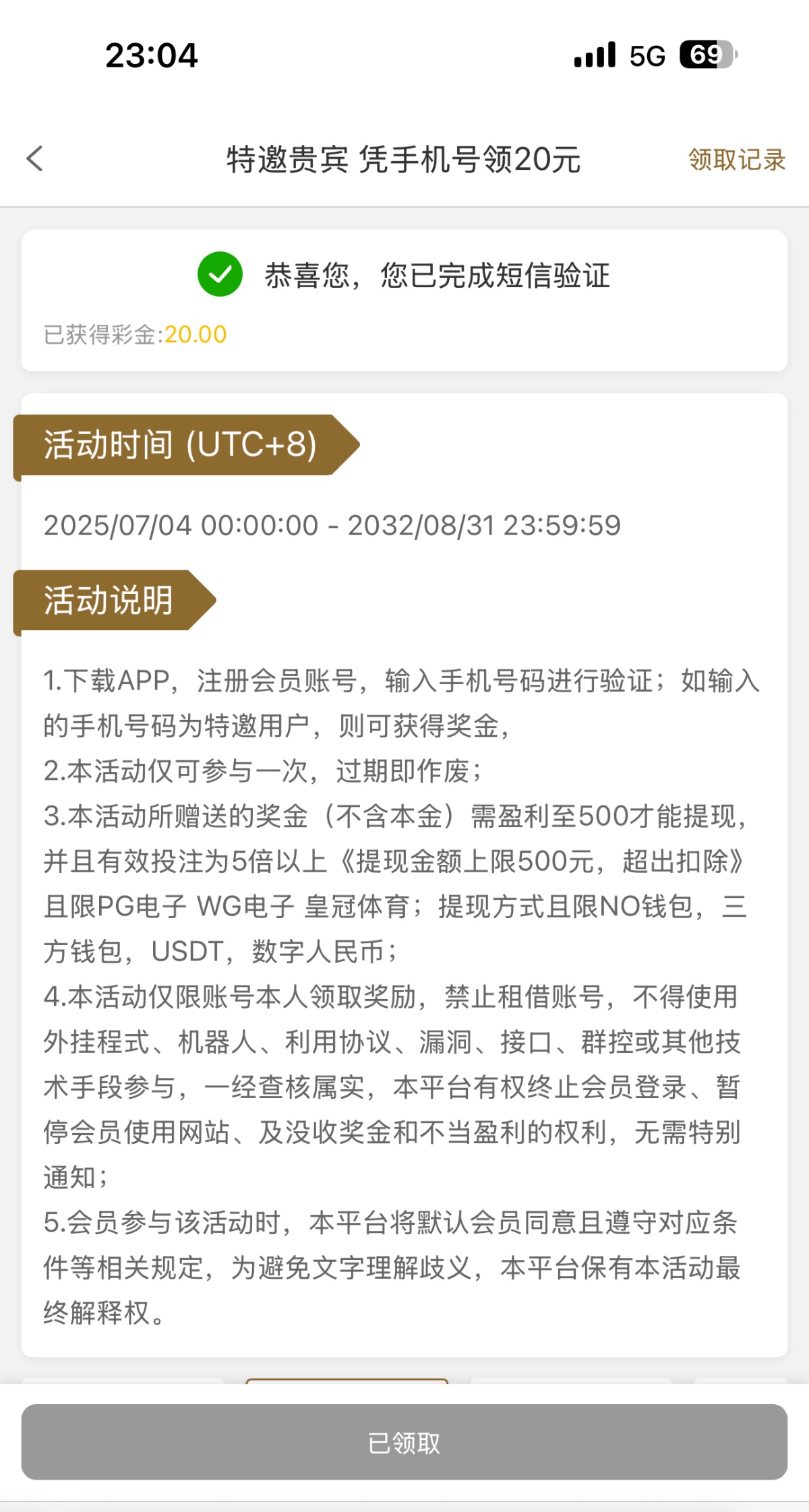 特邀自助彩金 20