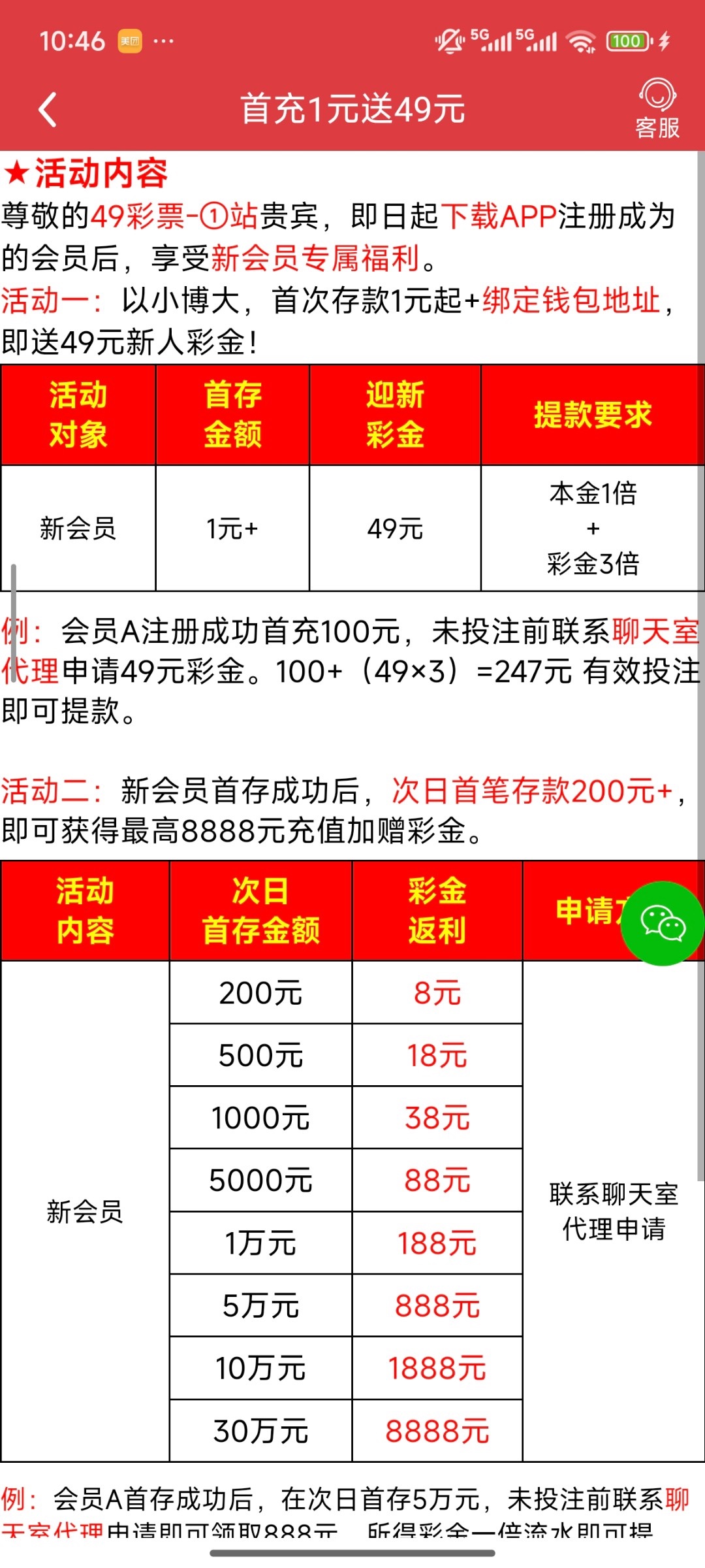 4499.com 别进错了 是一站49彩票 下载app首存1+送49 充值我看钱包可以最低冲30 提钱包最低100t 不限制游戏 我打了100出来