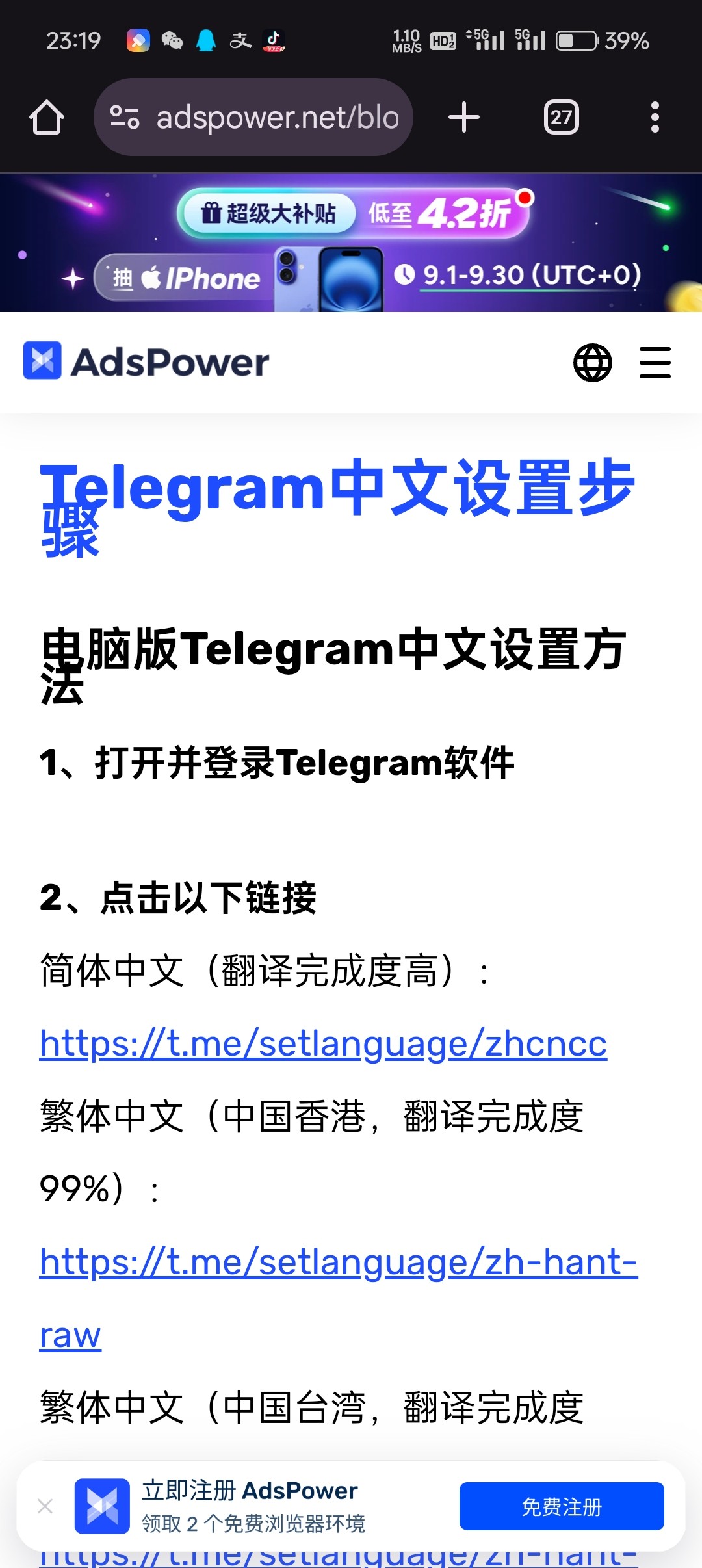 点进去链接弹开电报进去就是汉化版了