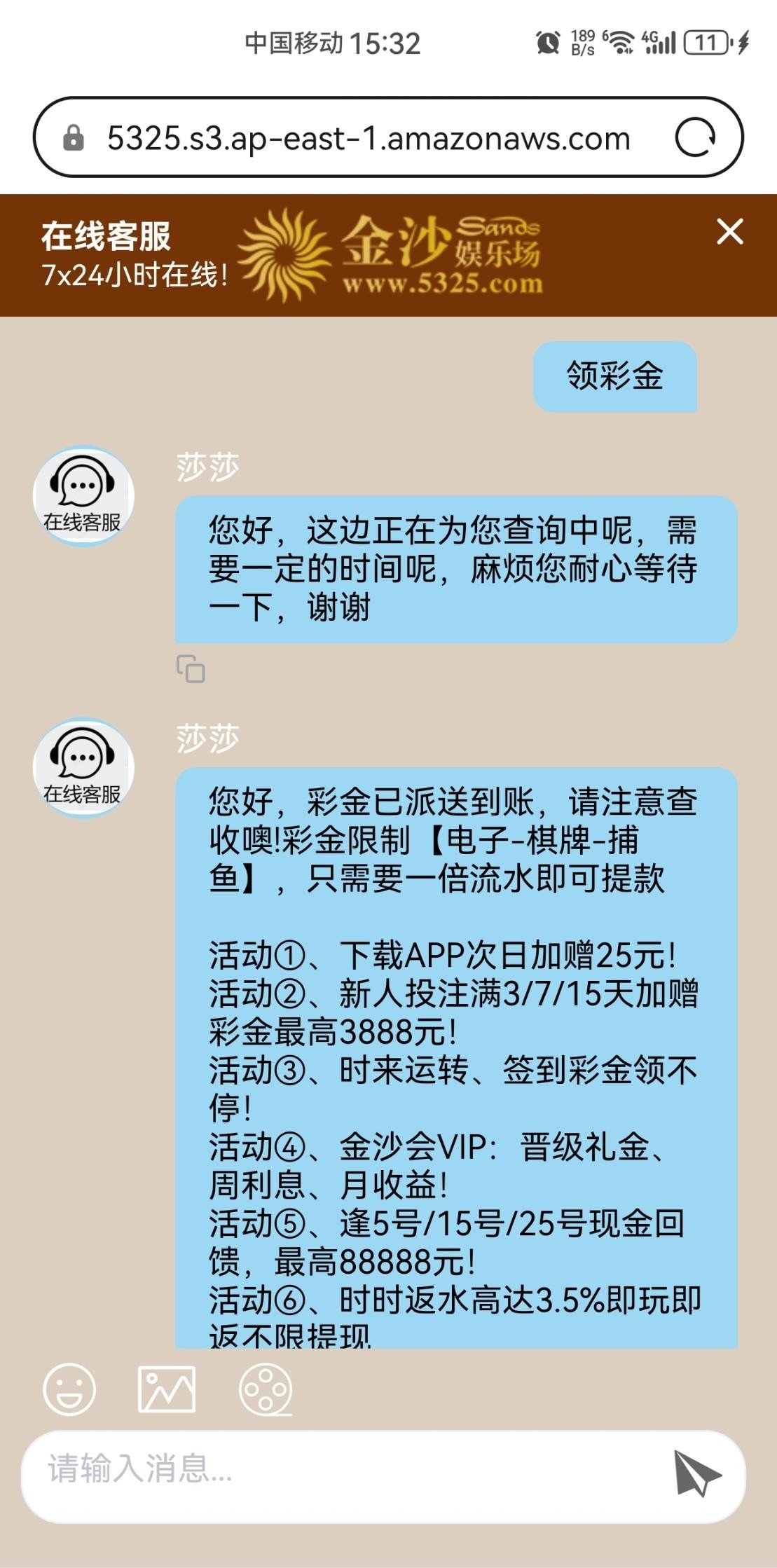 【金沙5325】电话特邀彩金