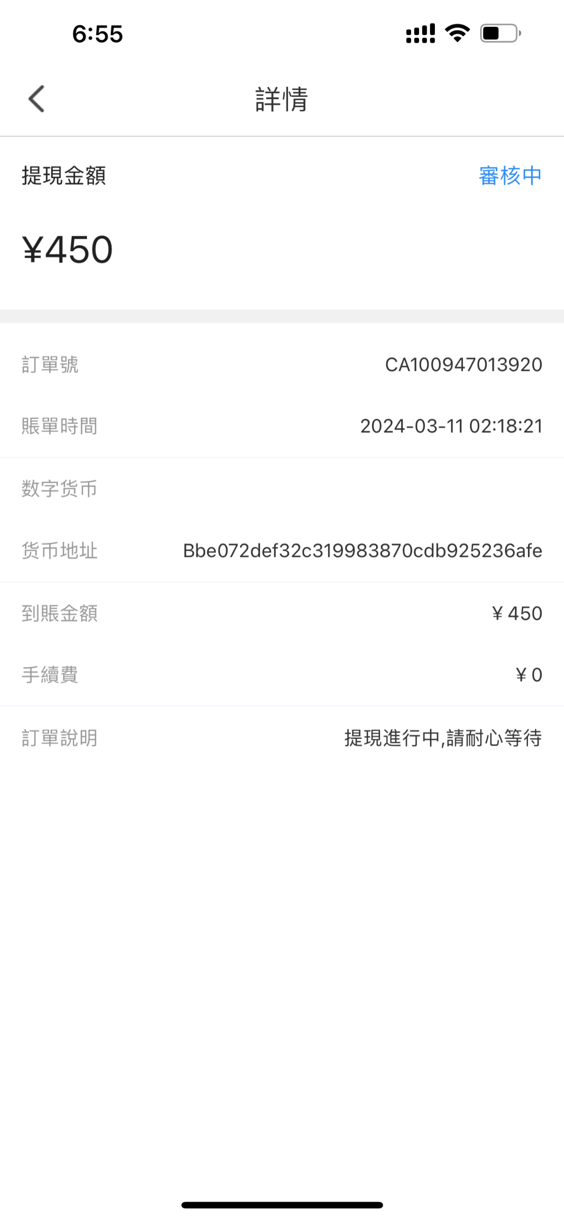 我提的就是波币被卡住了,到不了要充值450打一倍流水才可以