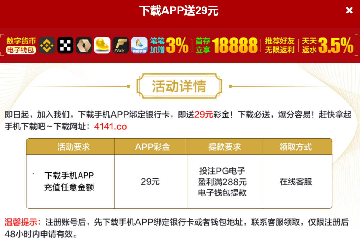 特邀碰瓷28元,之前就发帖子的,也有注册下载送29,用常用的手机号码去试试,禁止充值,问题自负!