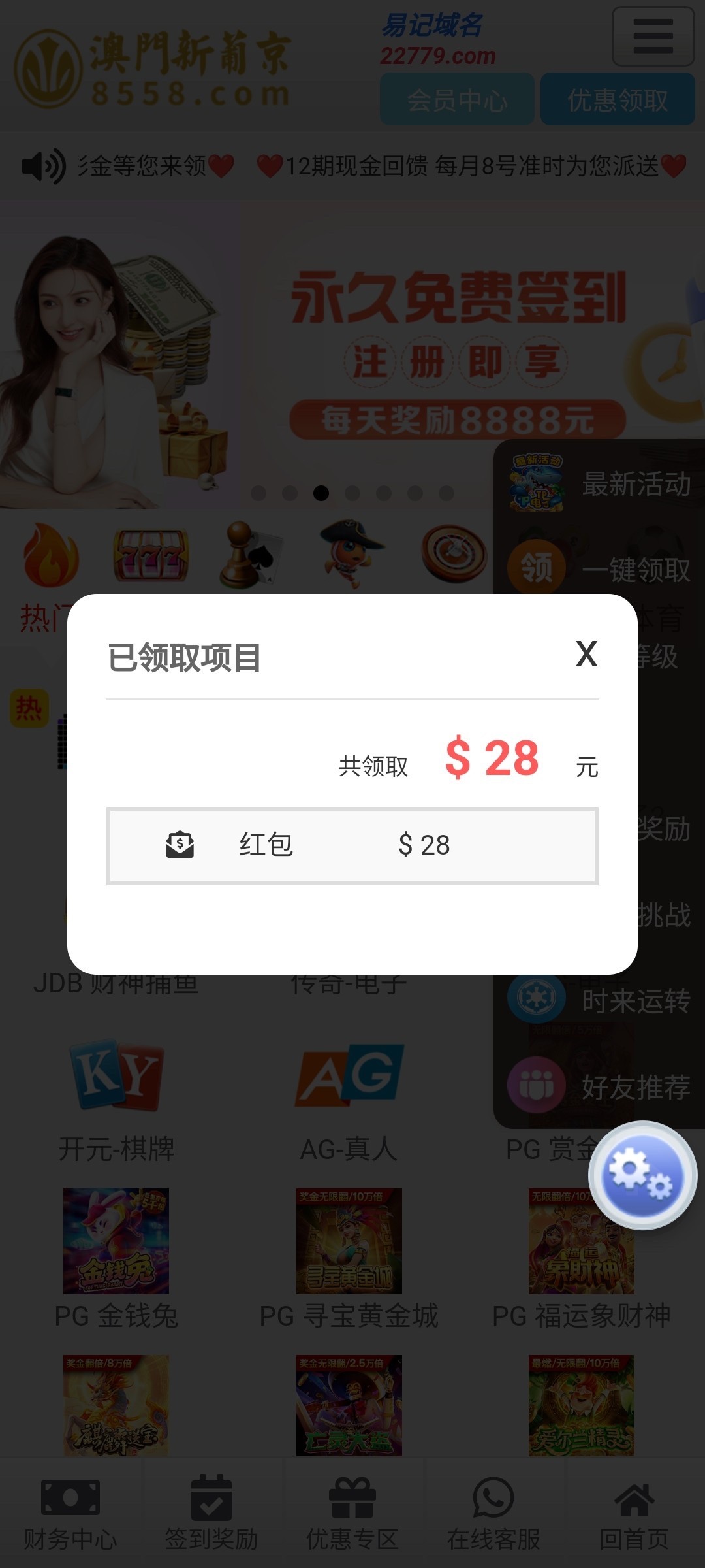 注册社区每日送10-50金币